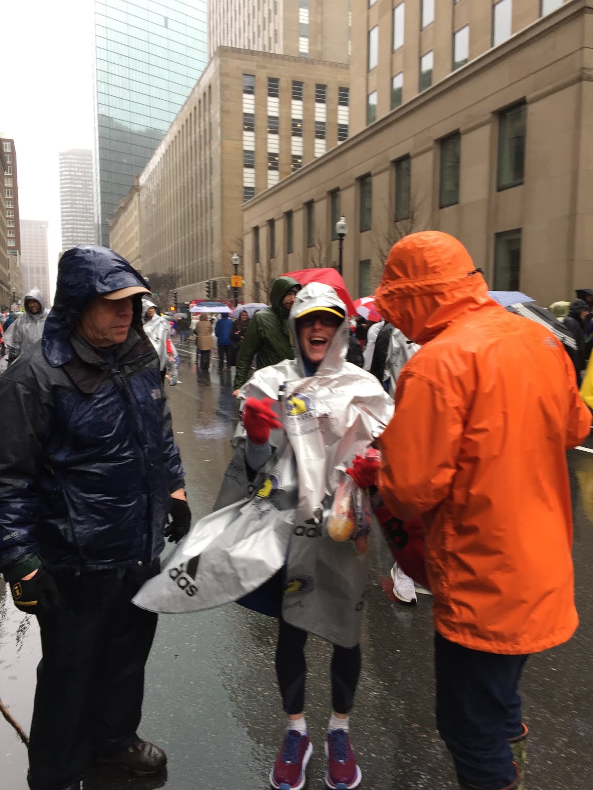 This is a first for Marathon day (for me, anyway.) It was pretty exciting, although I was glad to hold off on hiking to the bus until it had let up.